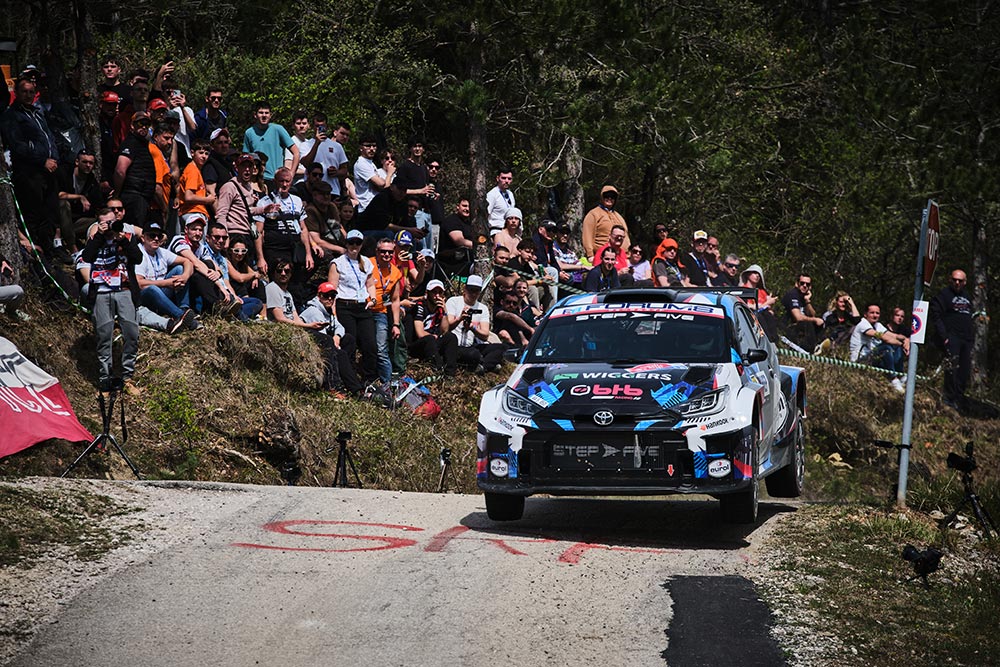 Takamoto Katsuta bezet de derde plek en blijft met een achterstand van 14,6 seconden op de leider volop in de strijd om de overwinning.